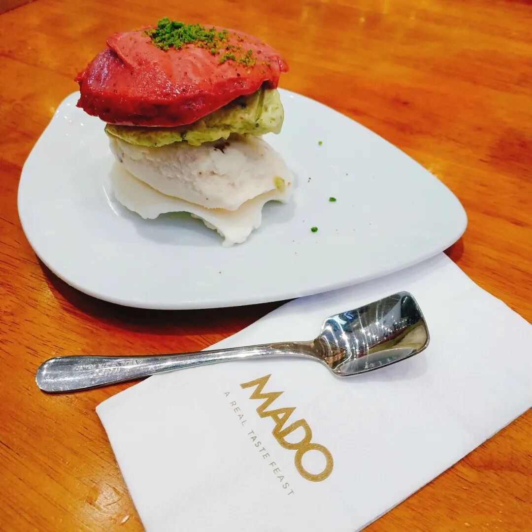 去年到义乌出差,意外尝试了一家土耳其冰淇淋店,后来查的时候发现国内只有广州还有一家。他们家的冰淇淋像一块块五彩缤纷的面饼叠在一起,不同的颜色是不同口味,口感也很有层次,是粘粘的,糯糯的,舌头抿开还有配料的小颗粒。还想吃,馋了很久了,不知道还有没有机会~