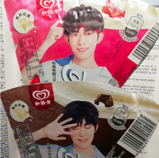 我是易烊千玺的粉丝,正在备战高考,开学后就封闭在学校两个月直到高考,易烊千玺是我奋斗的动力。那时候,唯一能接触到新鲜的千玺只有小卖部的可爱多的包装,我特别珍惜。我独一无二的高三回忆,不只有想哭和苦涩,也挺甜的!我把包装留下来了。