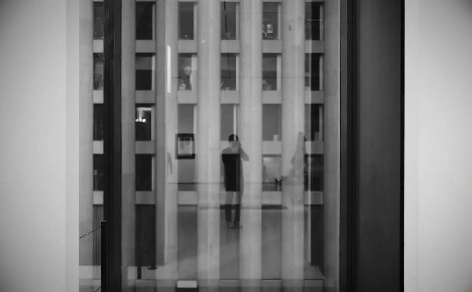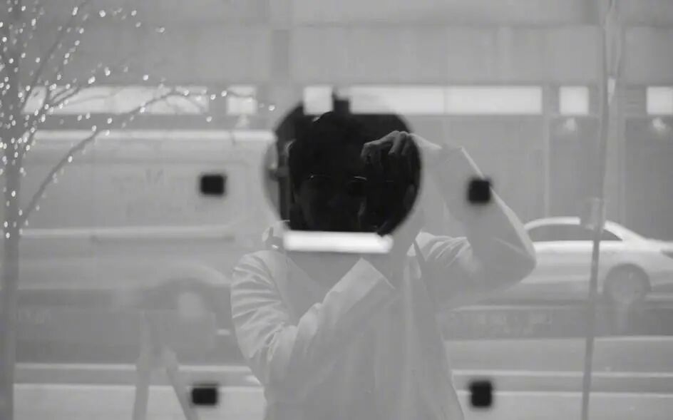 他会带着相机,喜欢走哪儿拍哪儿。在纽约,他拍摄街道、建筑、行人,也拍自己。在微博发出的一组名为「一些自拍」的照片里,他透过酒店、美术馆和街边商店的玻璃窗、玻璃门拍摄自己的影子。这些镜头里,他不再是韩琦,不再是陈屿,而是杨玏。