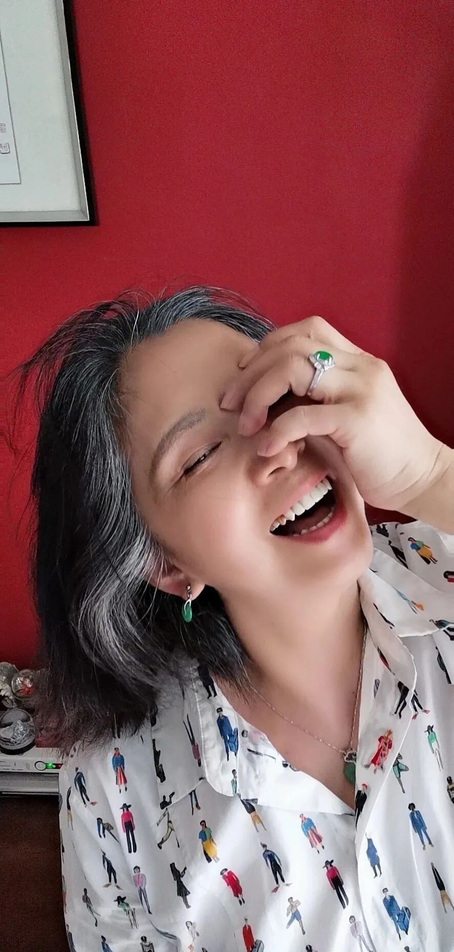 在视频里,她戴着小巧的耳环,讲到一半,她撩起头发,露出大片的银色发丝,以及脸上的斑点。后来,她补充发布了一张素颜照, 获得了近7000个点赞和5000条评论。