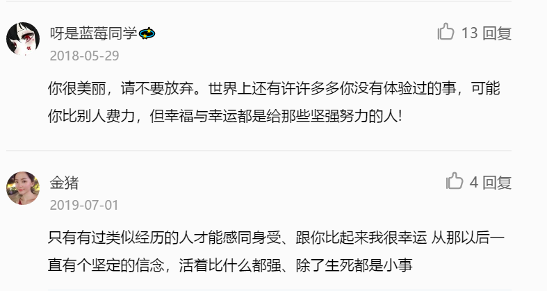 只有面对手机彻底放空时,她用一根手指头往下翻着,花花绿绿的美食美妆闯入眼中,她才觉得自己是快乐的。2018年5月,她发布了一篇名为《涅槃重生》的日记,讲述自己的遭遇,收获了数千点赞和数百条评论。她又掉了眼泪,这次是因为开心——「世界没有遗忘我。」