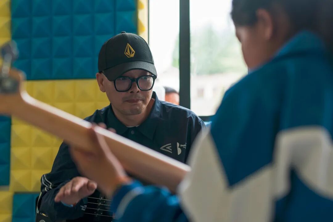 兴丽所在的「遇乐队」成员是海嘎小学建校以来第一届六年级。校长郑龙2002年来海嘎小学时,学校里只有1位老师,教8个学生。2014年,郑龙兼任山腰处一所小学的校长。那一年,背着吉他的顾亚来学校报道。12年前,郑龙也是背着一把吉他来到海嘎,两个热爱音乐的人碰在一起。他们申请经费,买了贝斯、架子鼓,顾亚的朋友送来几把吉他,教孩子们乐器。