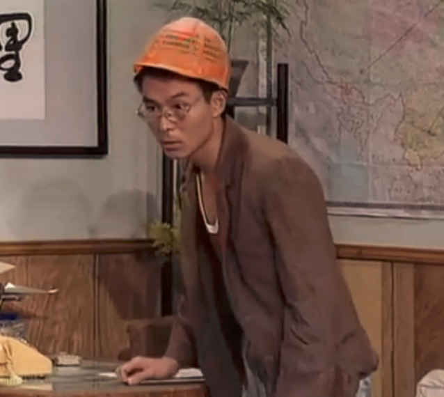 另一次是沾老哥们儿葛优的光,因为去年葛优参加春晚时的一件风衣,梁天、葛优、谢园在上世纪九十年代拍摄的一组照片在社交媒体上流传开来,当时三个人葱一样水灵,麻杆儿一样精瘦,葛优穿风衣,梁天穿一件天蓝色的polo衫,谢园穿的是一件红色鸡心领条纹毛衣。三人号称「中国喜剧三剑客」,《我爱我家》里保姆小张跟老傅一家人介绍宝财哥,也不忘说一句,「工地上的人说他长得像电影明星谢园。」那组照片和今天的精修大片很不一样,三个人溜肩斜胯没正形,就是九十年代北京胡同里乱窜的小青年,透着一股爱咋咋地的随性和莫名的亲切感。