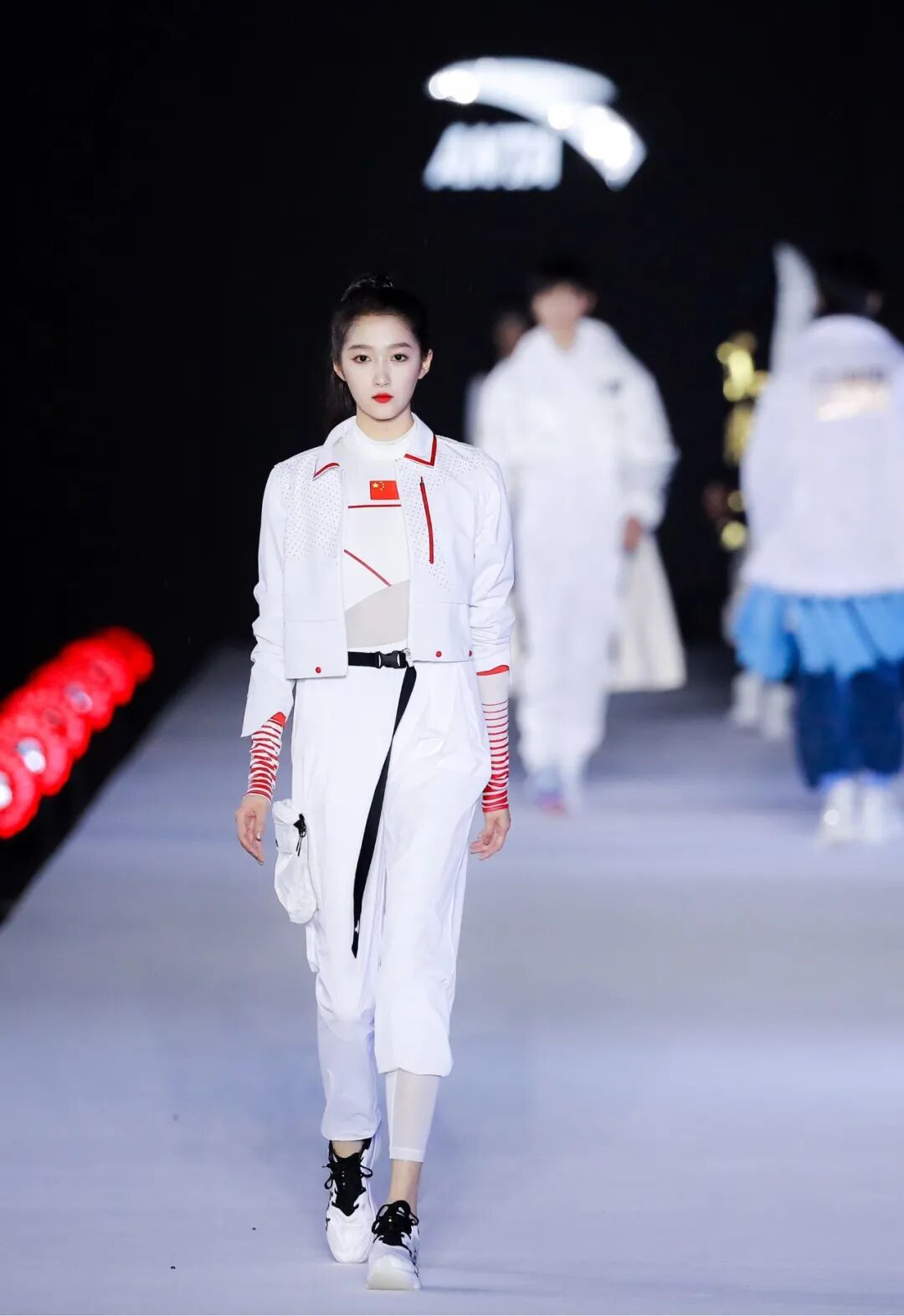 81米长的T台搭在外滩上,视觉上直接连接起了浦东和浦西,百余个模特在走秀时,背后就是林立的霓虹灯楼群。安踏全球代言人关晓彤也第一次走上T台,她扎着高马尾,束黑色腰带,身穿印有国旗的白色运动服。