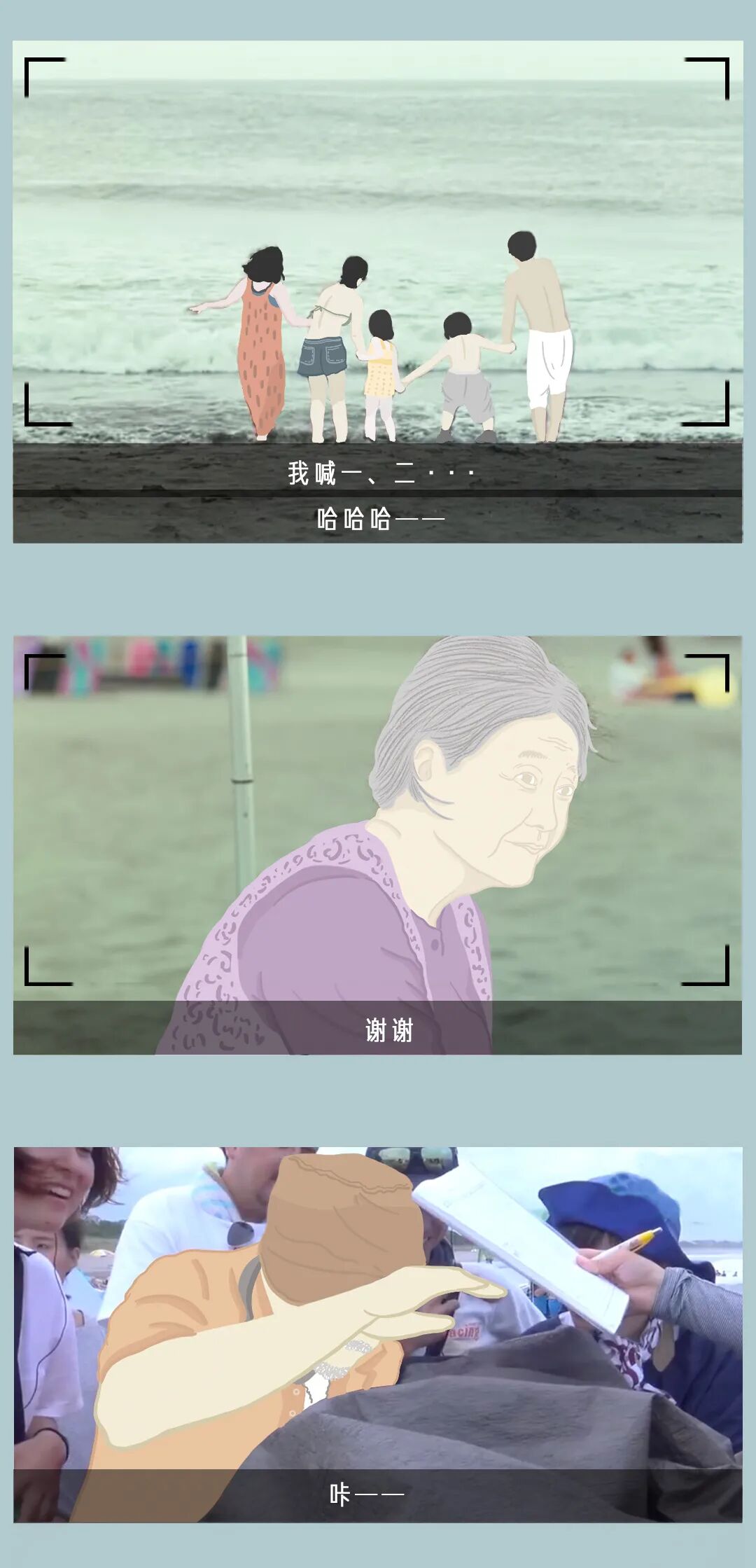 《小偷家族》里的一幕,树木希林独自坐在海滩上,对着人潮,说了一句无声的「谢谢你们」。我们怀念这位酷酷的怪奶奶,希望能够回望她,答复一句,「也谢谢您。」