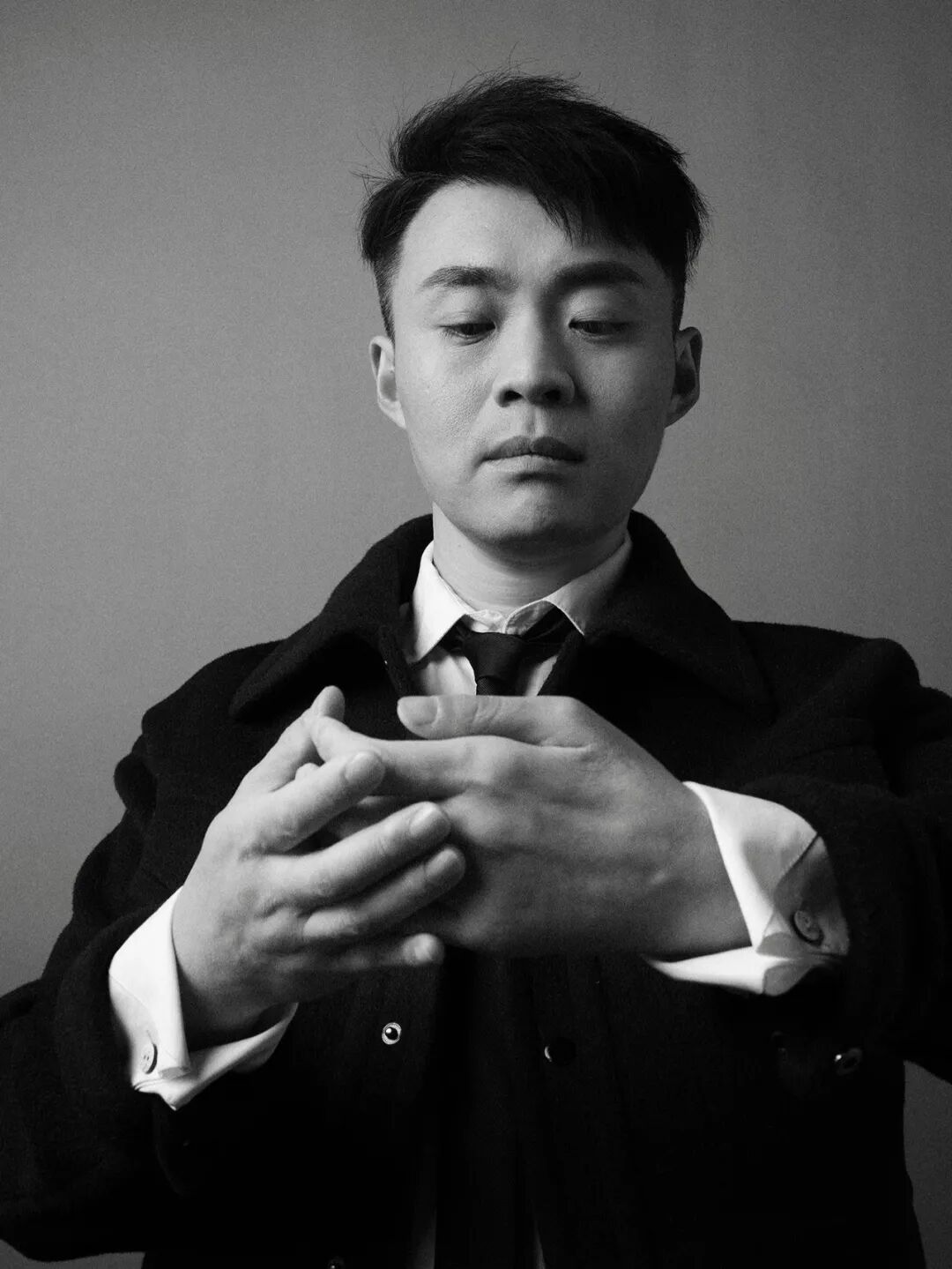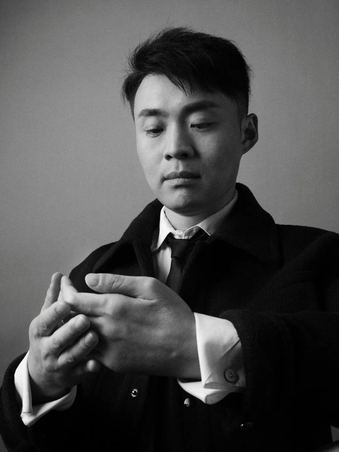 一张他披着灰色大衣站在镜子前的照片下面,有网友跟他开玩笑说「求你不要再用颜值来杀人了,我已经厌倦了在你面前反复『去世』」。他也不骄矜,回复:「你出去。」