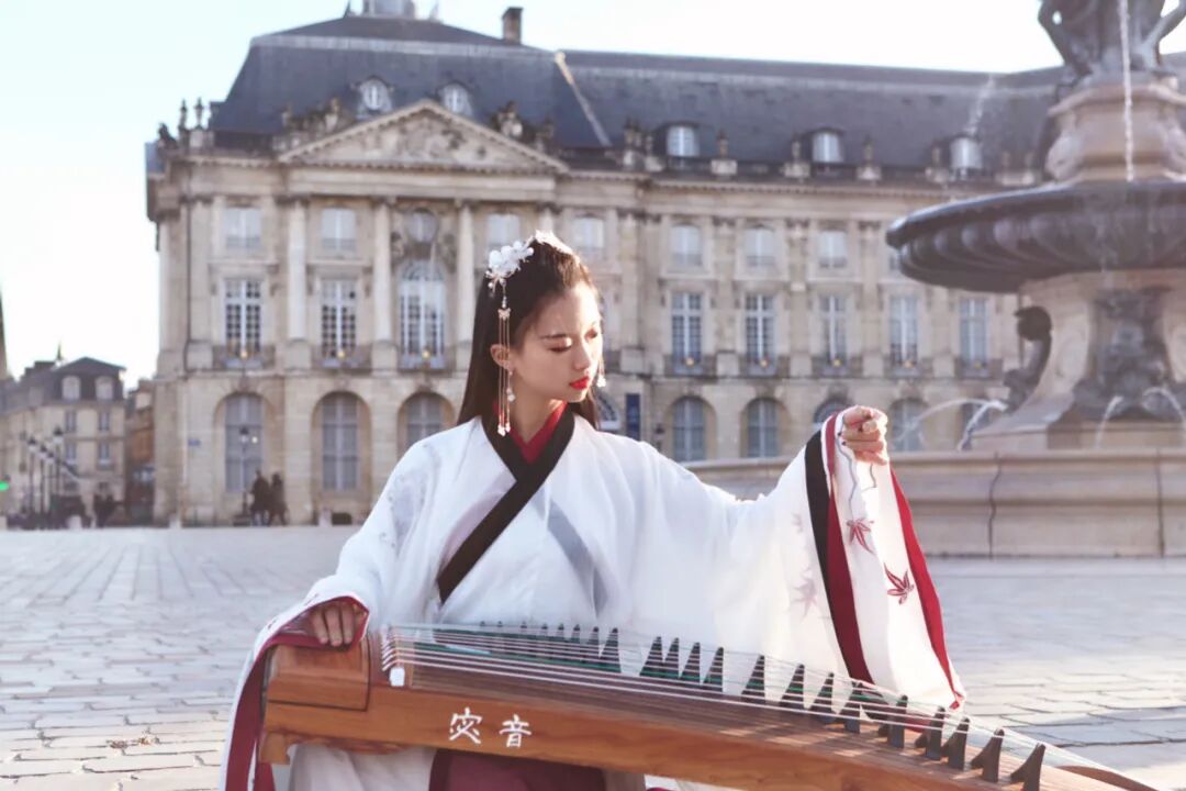学习古筝到第14年时,2018年,彭静旋从武汉音乐学院考到法国的波尔多第三大学。第一年到波尔多,她很不习惯,一切都是全新的,不管是生活环境、周围的同学,还是生活里使用的语言。她独自去上课,一个人坐在第一排,拿着录音笔录下教授的整节课,下课回到家后再重复播放,努力辨别教授说的每一个法语单词,然后整理到自己的笔记里。那些挑灯夜战的日子虽然充实,却让她感到了寂寞——自己的古筝没有带过来。