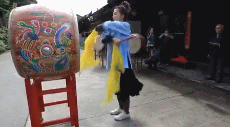 她开始承认自己的「有限」——在听说了湘西老家有一种武术鼓之后,她便跑去保靖,拜武术鼓传承人洪富强为师。练鼓的那些日子,有朋友收到过一张她发来的照片:一双长满茧子的手,有的茧子破口了,结了血痂。半年后,她成了苗族鼓舞武术鼓的「非遗传承人」,还组建了一支鼓队,成员是13位苗族鼓女。每年,她都会把这些女孩带到杭州、上海和长沙参加演出。