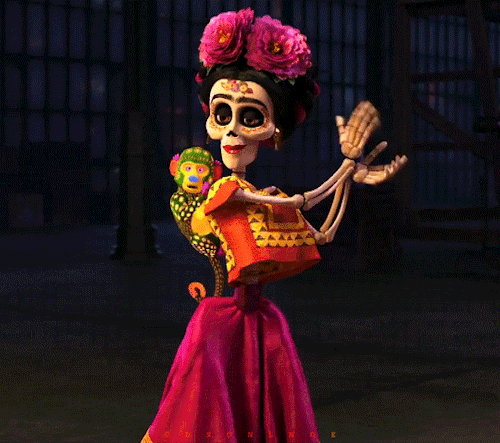 除此之外,影片中还出现了墨西哥历史上的的诸多名人。歌神 Ernesto的原型是墨西哥历史上赫赫有名的全民偶像Pedro Infante Cruz;在歌神的派对场地,出现了墨西哥传奇摔跤手El Santo的身影;而那位在亡灵世界被追捧的一字眉女艺术家,正是现实中热爱画自画像的墨西哥著名画家弗里达。皮克斯以这种独特的形式去纪念那些曾在人类历史上留下辉煌作品的名人艺术家们,并试图提醒我们:不要轻易遗忘那些逝去的人。