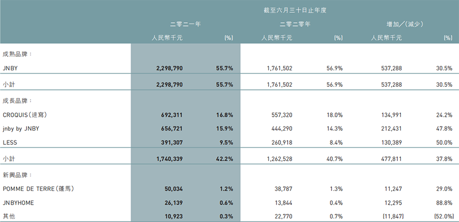得益于完善的会员运营体系,2021财年,jnby by JNBY品牌收入为6.57亿元,占收入总额15.9%,在集团六个子品牌中位居第三位。与此同时,收入同比增长47.8%,增幅超过JNBY和速写等成人服装品牌。