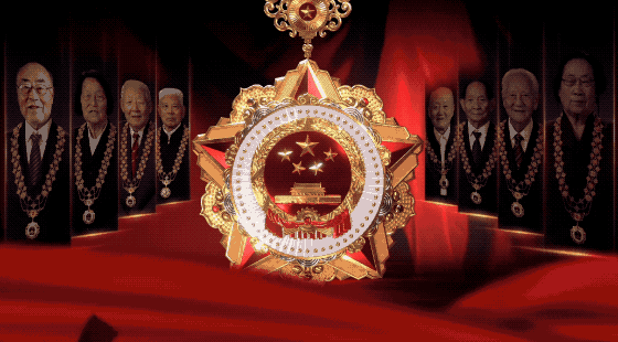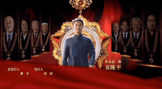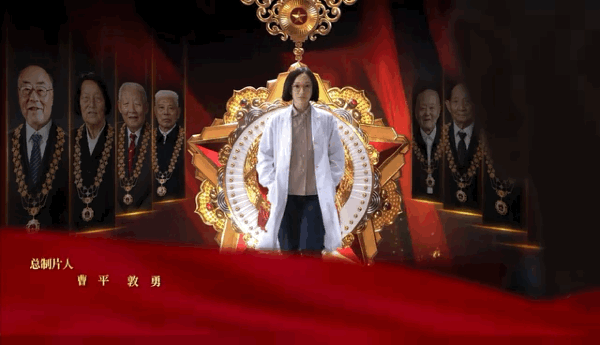 在“共和国勋章”的映衬下,8位扮演共和国功勋的演员由远及近走来,逐渐变成真实的功勋人物来到观众面前。这个片头看似朴实无华,但这种跨时空的变化与交融,也给这部剧定下了基调。