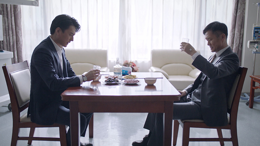一场重头戏是林满江与齐本安在会议室兄弟反目。我记得那场戏有好几页纸,其中情感复杂,对峙中夹杂着兄弟情。拍摄的时候,我当时血压一下子飙升了,拍得气喘吁吁,现场停顿了几次,因为累得说不出话,得先把气顺一顺。演戏一旦注入情感,很容易上头。