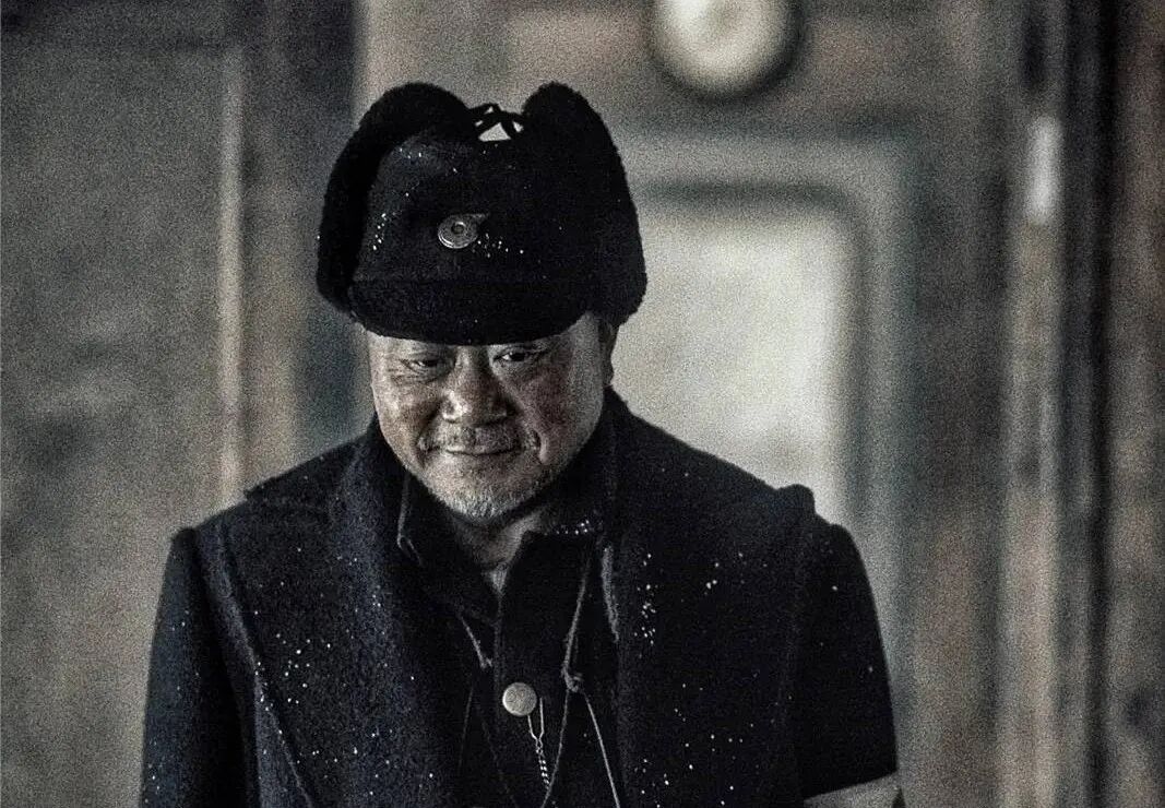 老王用手雷炸完了敌人回到车站的那场戏,是充满浪漫主义色彩的。他看着藤原的望远镜,站在那儿冲着他喝了一口酒,然后就走了。这个细节让老王这个现实主义风格的人物,充满了革命的诗意。这场戏拍得特别仓促,当时光眼瞅着都快没了,因为我们也一直在犹豫,该用什么方式比较好。原先想过让老王冲着望远镜后的藤原喝酒挑衅,但还是放弃了。我们就用了一个特别“淡”的表演,结果很好。虽然光没有那么理想,但分寸感很好。