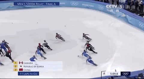 2018平昌冬奥会短道速滑男子5000米接力决赛:中国队摘银