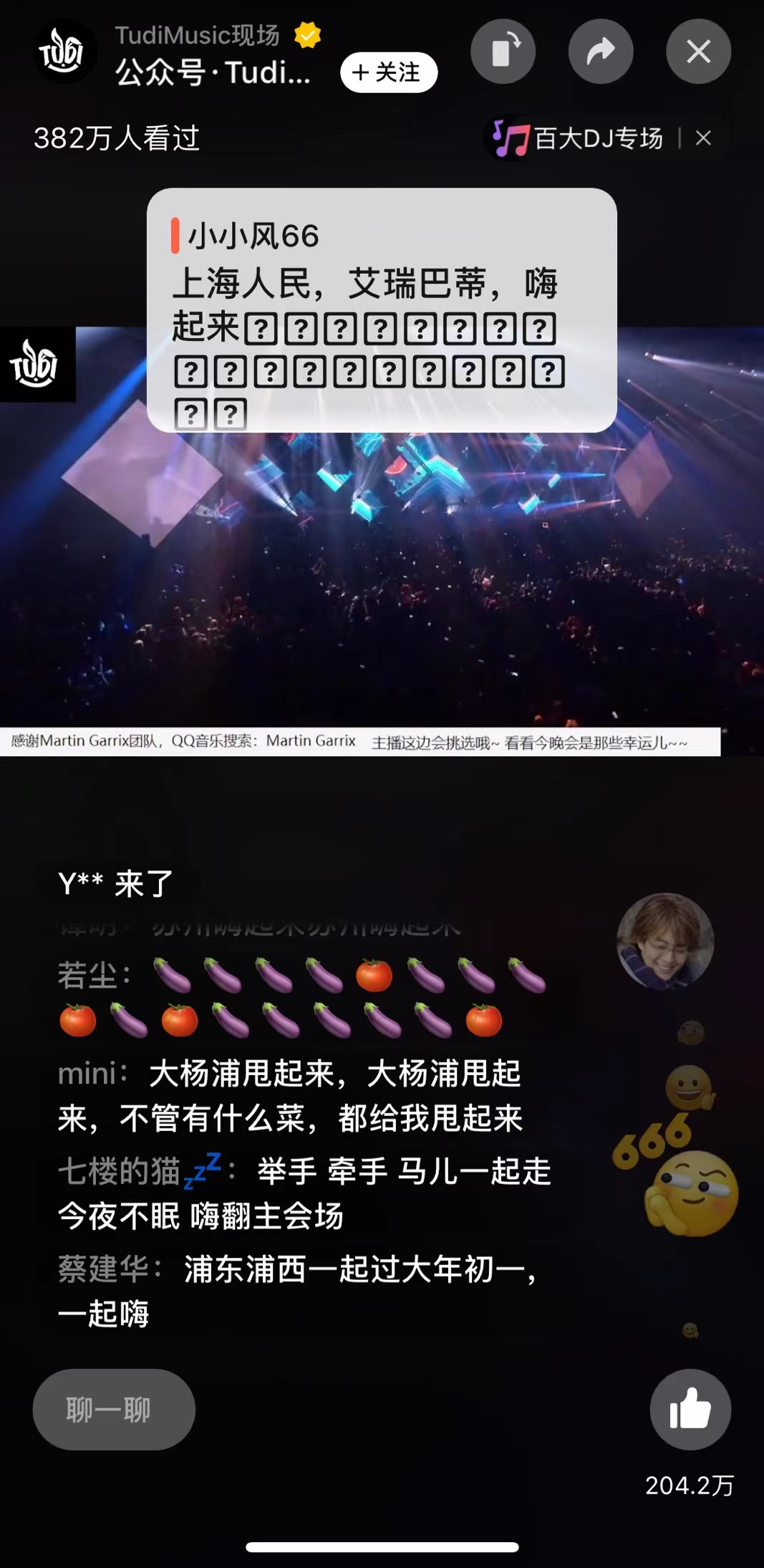 直到屏幕上突然多了一些挥舞的蔬菜,定位在上海的观众开始加入,画风突然开始变化。最高在线观看人数超过了60万,最近看过人数超过了300万。
