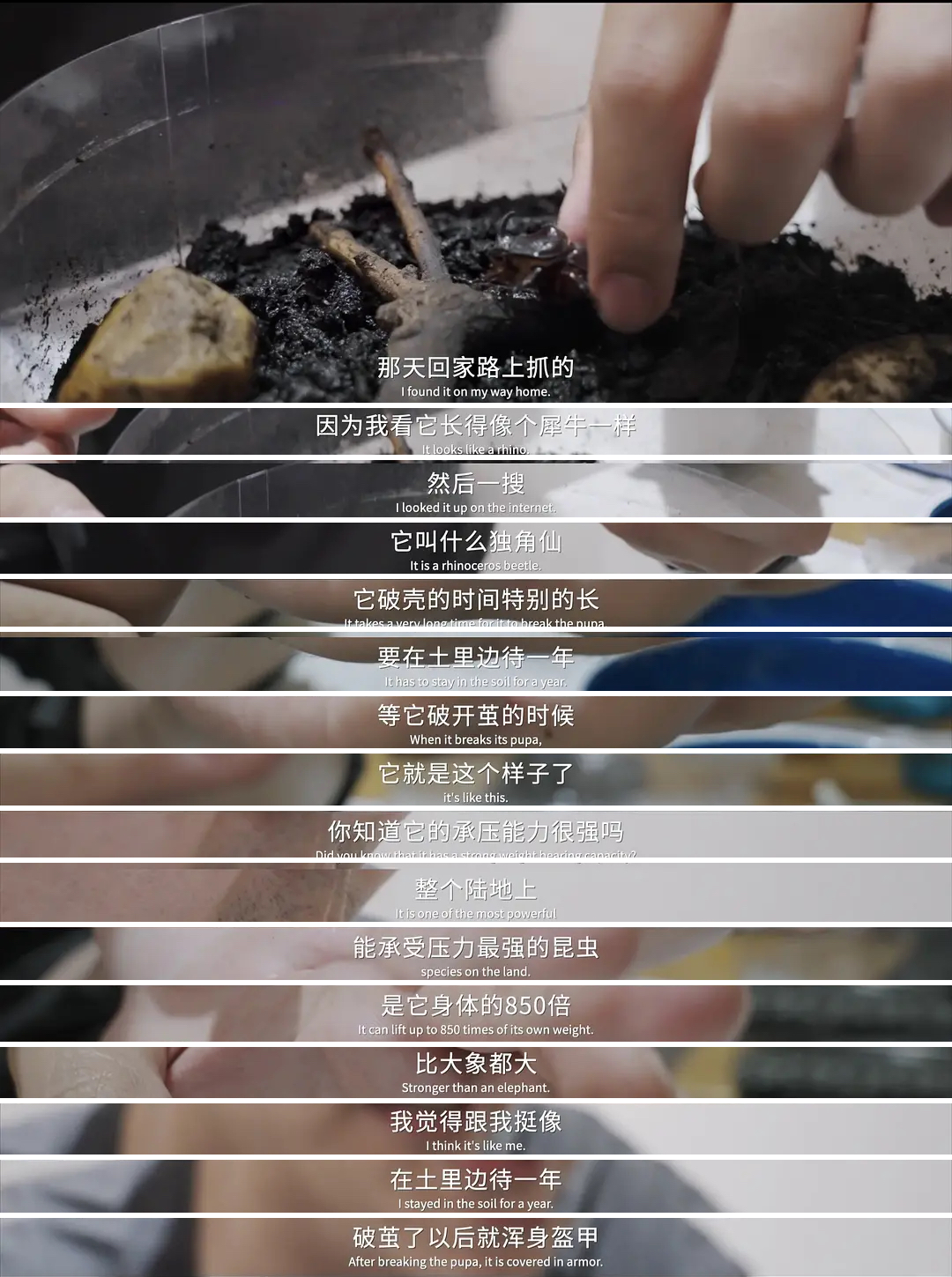跟拍周倩仪的后期,吴学竞曾在广州午夜的一个路灯下,见到过一只奋力褪壳的蝉。回家之后,他看到资料上说,蝉的幼虫,出生时就在地下沉睡3、5年,有的甚至会长达10年,破土而出的时候,也是生命最灿烂的时候,即使它用漫长的黑暗,只换来十多天的时光。