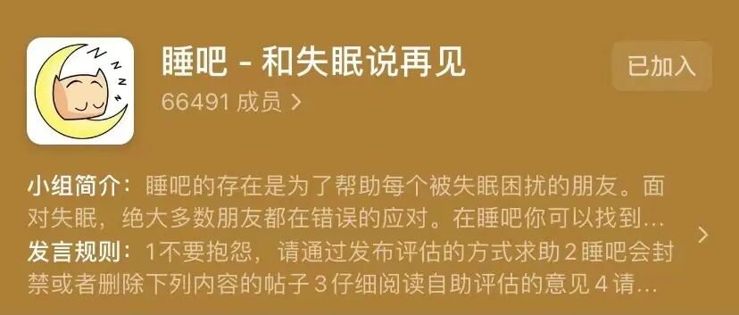 在豆瓣,“睡吧—和失眠说再见”小组,汇聚了六万余个失眠者;“睡眠障碍互助小组”也有超过一万个夜猫子,陪伴彼此度过一个又一个夜晚。