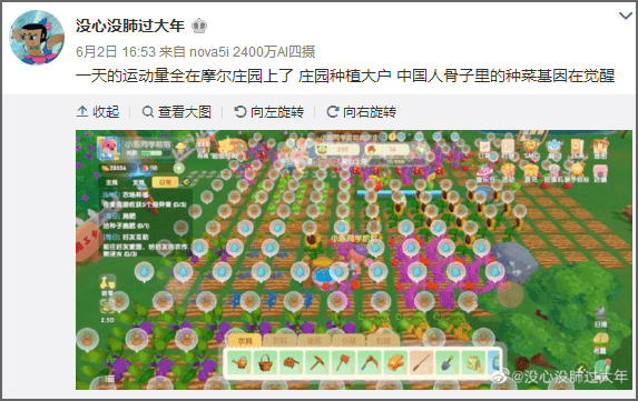 虽然上班996,回家还要在庄园里007干活,但自嘲“庄园打工人”的他们,永远割舍不下那份收获自家农作物的喜悦。