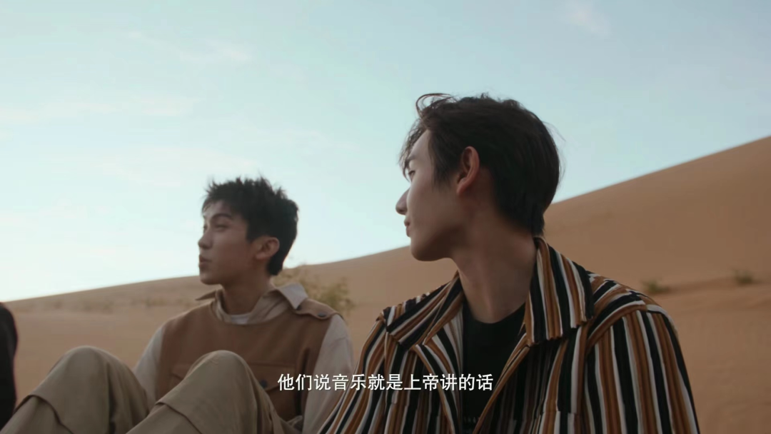 为了感受自然,在宁夏的荒漠上,刘宇要和流动艺术家进行互动。一开始,他不适应两个陌生人之间的身体接触,但渐渐地理解了其中的含义。通过和艺术家的交流,他明白当一个人面对周围恶劣的环境时,只有人和人才能感受彼此、靠近彼此。他想,音乐又何尝不是如此。