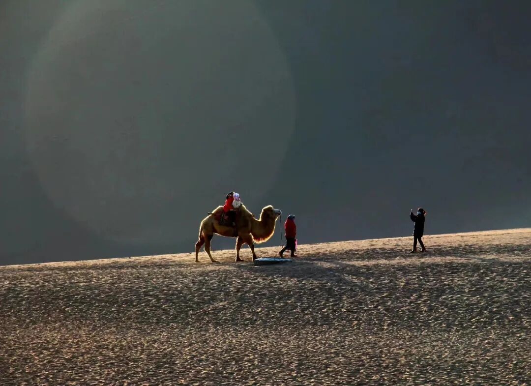 这注定是一场充满西北气息的旅程,金戈铁马,黄沙漫天。出发前,我默念了一遍高中地理课本上的知识,它们在我的脑子里留存至今:海拔高、气温低,昼夜温差大,降水少、气候干,太阳辐射强……所以必备的是防晒、保湿物品,还有早上穿的皮袄和中午穿的纱,当然,不能忘了我最重要的东西:骆驼驾驶证。