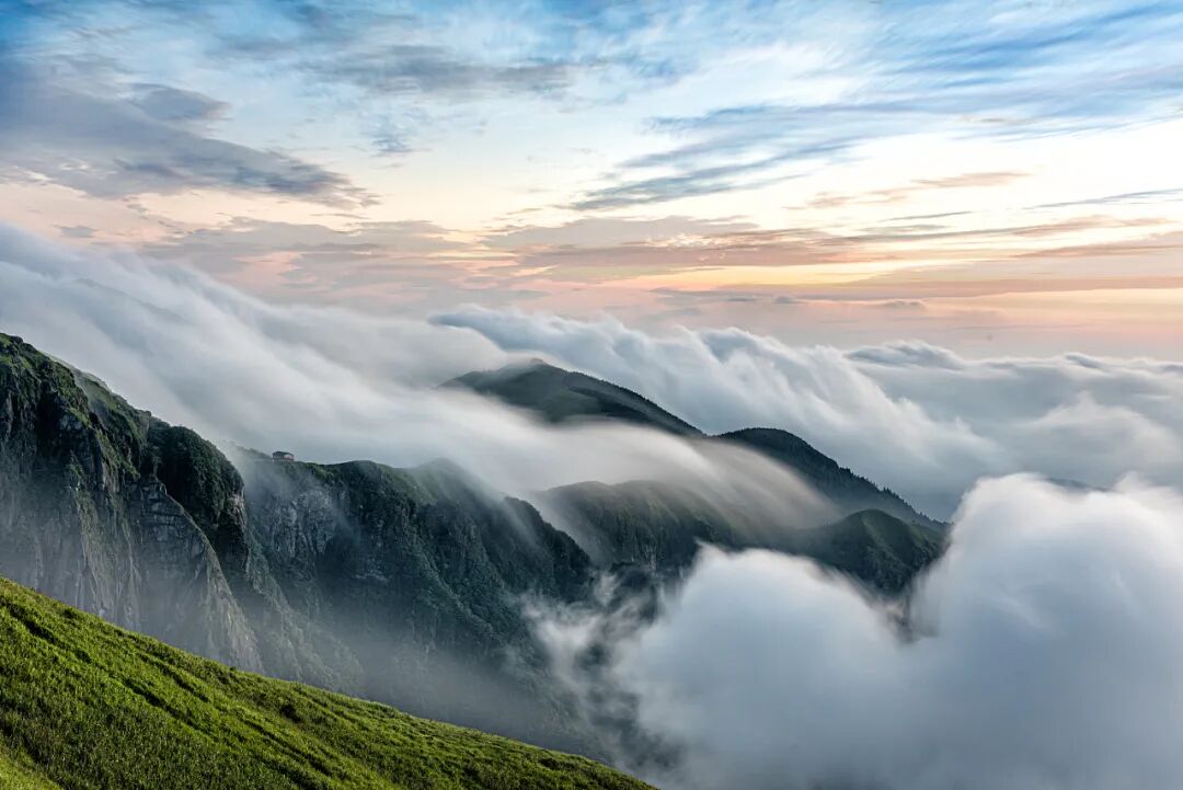 一次,武功山就这样闯入我的眼睛,是怦然心动的感觉,当时我脑子里冒出一句话来:一座温柔得像猫咪一样的小山。那种不同于北方岩石粗犷,也区别于南方峡谷陡峭的小山,坡度缓缓的,绿得也刚刚好,远处有雾霭和云海翻腾,以至于从此我把它列为可以出京后我第一个要去的地方。