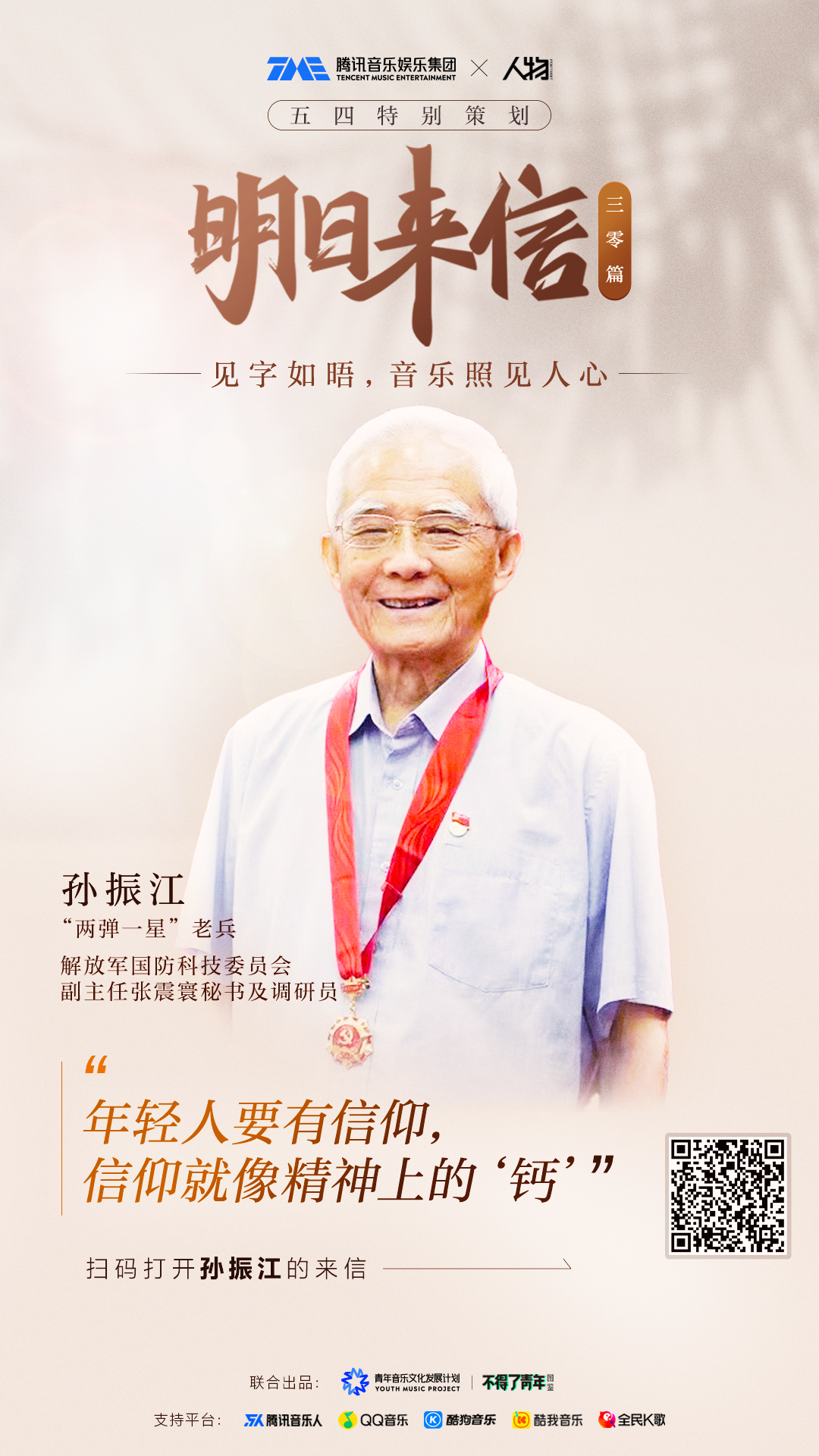 同样被“明日来信”这个主题打动的,还有86岁的孙振江。他是解放军国防科技委员会副主任张震寰秘书及调研员,也是“两弹一星”老兵。