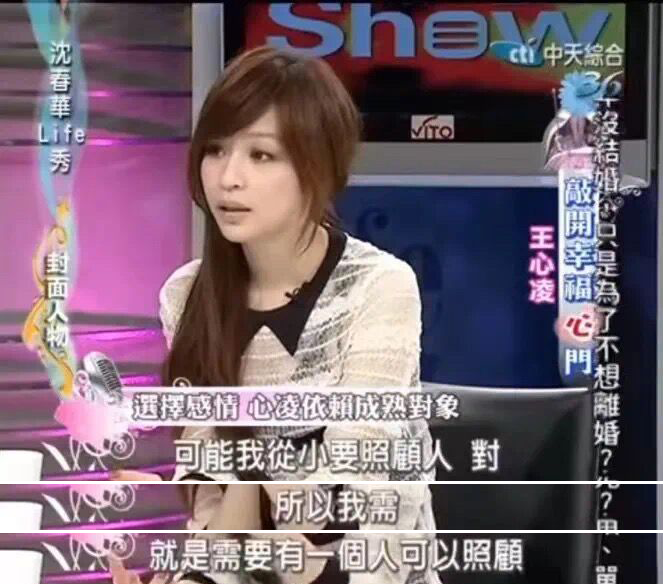或许是这样的成长环境,让王心凌对爱情和家庭有很强烈的渴望。刚出道时,她就在《康熙来了》里说过:“我一定会结婚,而且我还想好了要生两个孩子。”也会提到,“很想被保护,除了家人,我没有被这样照顾过。”