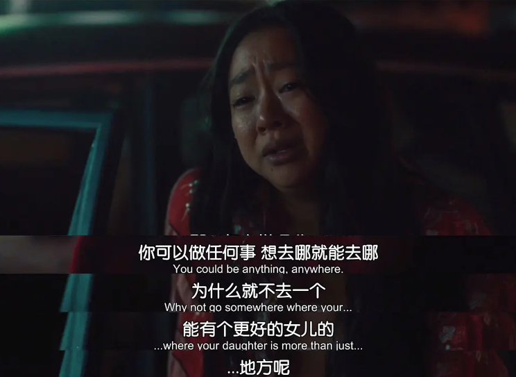 在被贝果吞噬之前,伊芙琳凝视着自己的生活,确定在一地鸡毛的虚无之间,还有能被确认的东西,那就是她自己作为一个人的存在。她对家人的喋喋不休、对琐事的尽心竭力,不只是家庭对一个母亲、社会对一颗螺丝的要求,也是她自己所选择的生活方式。最后伊芙琳追上乔伊,依然抱怨她发胖、文身,还不给家里打电话,好像一切都没改变。宇宙差点就毁灭了,对伊芙琳来说最重要的还是这些。正是它们构成了伊芙琳生命的意义,成为了她存在与虚无之间的一线之隔。这也为我们这一代审视东亚母女关系提供了一个重要视角。我们关注自己的主体性,强调个体的独立,把脱离原生家庭的束缚看作成长道路上重要的一关。但我们有可能忽视了,子女高喊着「不要想着改变我」的同时,母亲根深蒂固的观念同样也是无法改变的。她有自己的人生旅程,也有自己的生活哲学。「到死都无法脱离」的母女关系,无论好坏,依然构筑了我们在人世间最紧密的羁绊与联结。