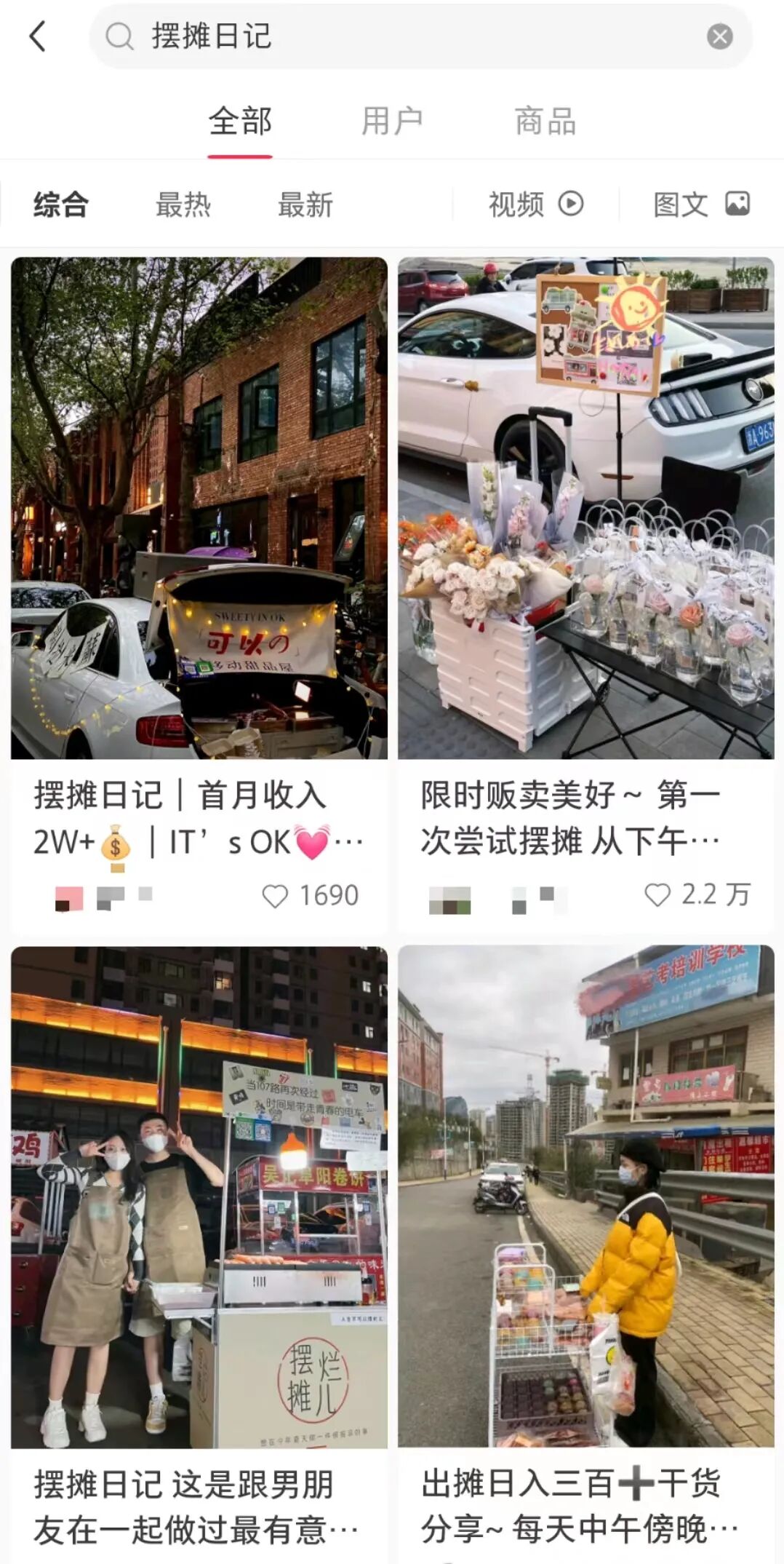 ▲搜索“摆摊日记“,收藏量从几千到上万不等。图 / 小红书