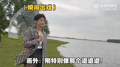 但花絮却完全是另一种画风,白敬亭手中的透明雨伞和黑色雨伞相继被大风吹断,用现场工作人员的话来说,“就像是退退退的表情包”。