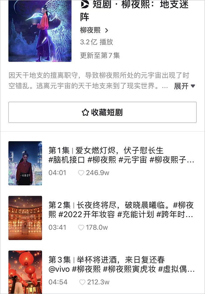 这意味着虚拟人项目需要大量的资金去维持。高昂的制作成本,也让虚拟偶像的后续曝光更为谨慎。出道一年,抖音红人柳夜熙在抖音上也仅更新了16条作品。