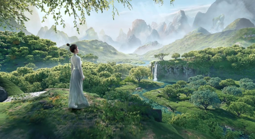 统一青梅绿茶结合翎蕴含东方美学气质的人设,制作了一段近两分钟长的国风动画《千里江山寻梅记》。视频中,薄雾笼罩着青山,人物泛舟于湖中,或是品茶,或是听曲,翎看着漂流而来的一碟青梅,吟诗“青青梅子满林间,人间美景四月天”,随后便踏上寻梅之路。