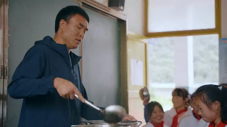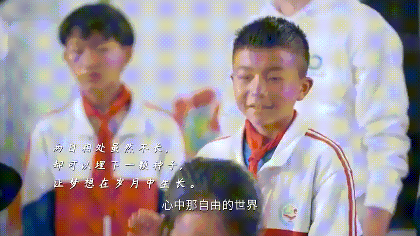 对孩子们来说,体育运动是酣畅淋漓的,也是激发学习必不可少的动力。镜头拉远,被大山包围着的学校里,出现了一片彩色的图案。在那个刚建成的“未来运动场”上,鲍春来认识了杨伟、张亚奇以及更多的孩子们,和他们比赛,也合唱《蓝莲花》。欢笑与汗水间,是对自由的向往,也是对梦想的追寻。