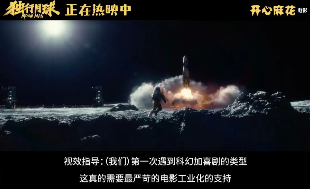 从场景搭建、特效制作,到虚拟拍摄、动捕面部技术等等,《独行月球》能够相对顺利、老练地完成硬科幻、大特效部分的拍摄制作,背后是《流浪地球》和《刺杀小说家》过去的试错与探索。张吃鱼在采访中提到,“他们已经把路趟过一遍了,包括我用的特效团队都是继承他们的,这些团队也都给了我经验。”