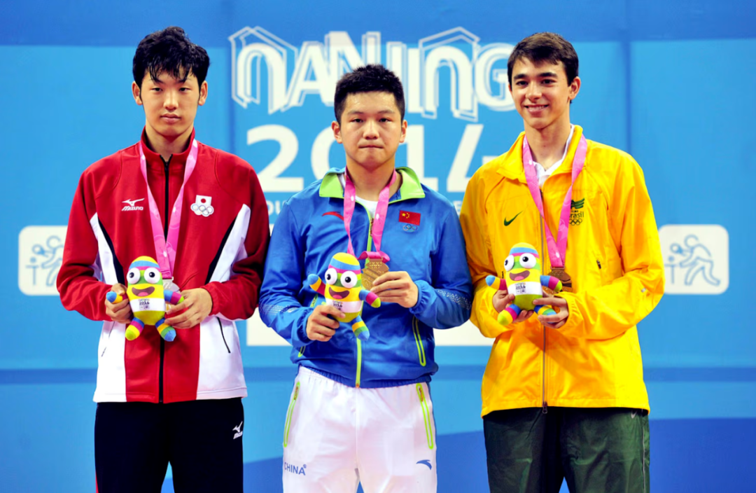 随后,18岁的雨果在中国举行的青年奥林匹克运动会上夺得了铜牌——这是巴西乒乓球历史上首枚青年奥运奖牌。