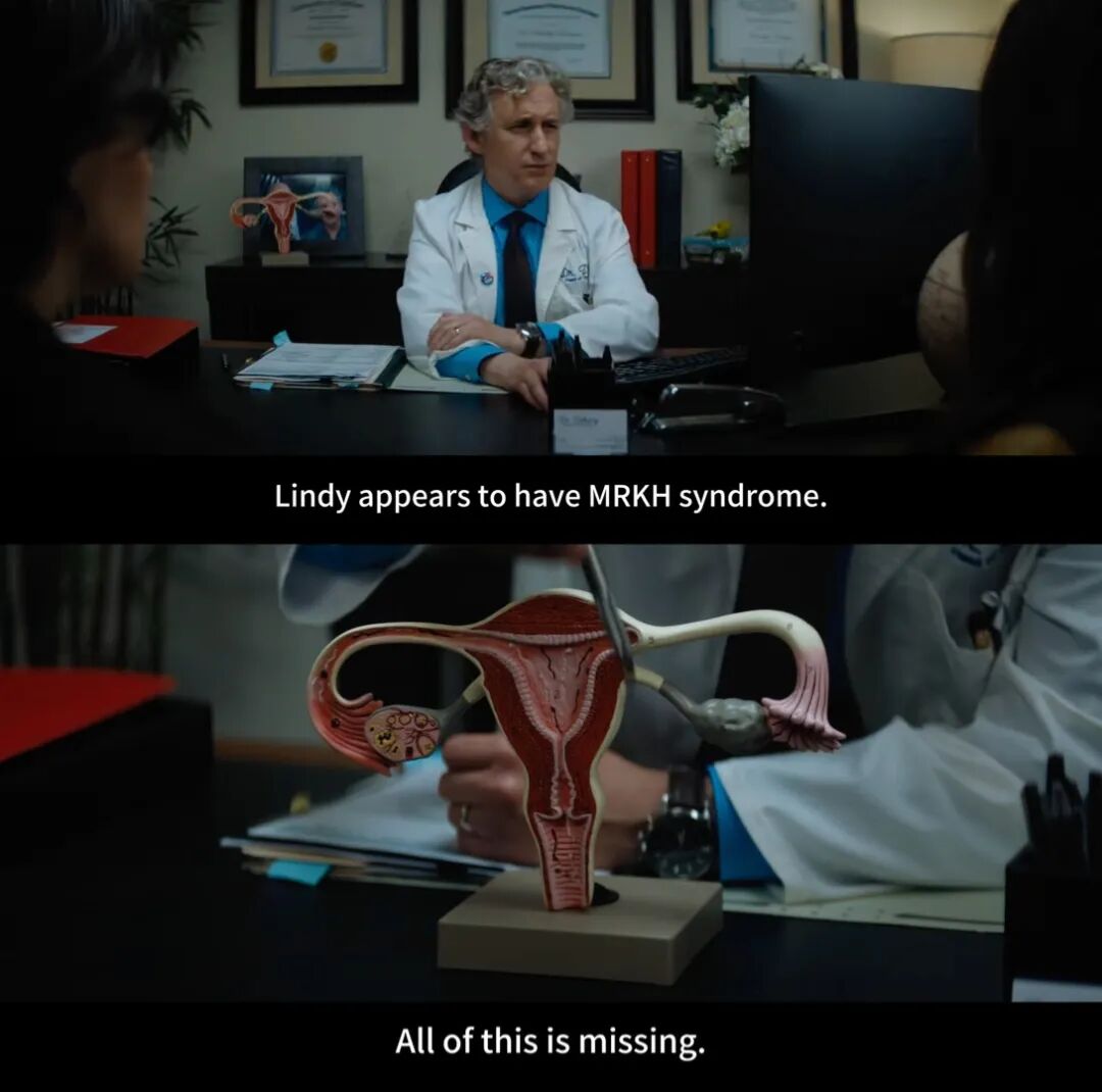 这样的困惑不止发生在天天身上,甚至连在西方文化中长大的女性,也会经历同样的挣扎。加拿大导演莫莉·麦格林也是一位MRKH患者,她基于自己的经历拍了一部电影《无法融入》(《fitting in》),在电影的访谈中,她谈到自己16岁确诊时、听到治疗方案后的感受。这些方案让她内化了一个逻辑,「我成为了一个容器。我是一个破碎的女性,只有去适应一个男性,我才正常」。