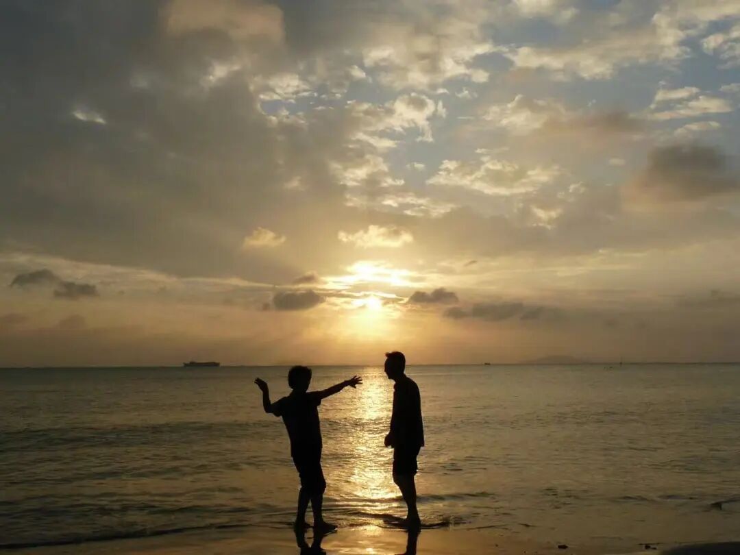 我爸走到哪就拍到哪,永远觉得还没拍完,嘴上总是说着,等我一下,等我一下。我妈对世界的一切,她都觉得新鲜,出去旅游,她什么都不拿,就背着手逛逛,看这个也好,看那个也笑,我爸爸就在屁股后头跟着,给她拎包,拍照,捡贝壳。