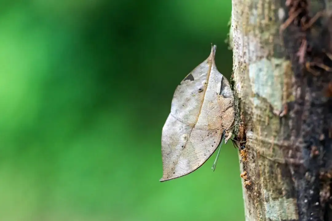 当时贝茨判断,捕食者一定都牢牢记住了一个结论,不要吃长翅蝶科蝴蝶。当然了,鸟儿、蜻蜓和蜥蜴没学过蝴蝶分类法,记不住学名,所以它们记住的是一个视觉特点,特别是蝴蝶翅膀的图案,这也成为了它们代代相传的生存警告,「不要吃长成这样的蝴蝶」。然而,贝茨发现自己经常认不清这种特殊的蝴蝶。他发现了一种比有毒蝴蝶更奇妙的生存策略:成为冒牌货。在长翅蝶科蝴蝶生活的区域里,常常出现很多跟它长得差不多的蝴蝶,尤其是当它们飞起来,翅膀一张一合,根本分不清楚谁是谁,他常常要在捕捉到之后,细细比对翅膀图案细节,才发现自己抓的是冒牌货,这些蝴蝶分明是其他种类的,根本没有毒。1862年,他在著作《亚马孙河上的博物学家》中详述了自己的观察结论:每一个物种都有自己的特点,它们凭借形形色色的策略躲避天敌,在丛林中活下去,而伪装正是对弱者来说最有效的生存策略。无毒的蝴蝶把自己伪装成有毒蝴蝶的模样,以此欺骗天敌,从而避免被捕食。「一个本来毫无防御能力的物种和一个繁盛的种族相似,它由此在适应性方面享受了特殊的优势。」后来,这种伪装现象被命名为「贝氏拟态」。贝茨在蝴蝶身上发现的拟态,成为证明自然选择过程的有力证据。他还在达尔文的《物种起源》引发争论时专门写信给达尔文,他相信昆虫的拟态是适应环境的方式,「我想我已经看见了大自然制造新物种的实验室」。十多年后,博物学家弗里茨·穆勒(Fritz Muller)发现了蝴蝶世界里的另一种伪装——原来那些有毒的蝴蝶也在相互模仿,明明身怀各不相同的毒,身上的花纹却长得越来越相似。穆勒提出,这是蝴蝶中的强者合作,也就是「穆氏拟态」,有毒个体通过互相模仿形成拟态环,共同震慑天敌,「离我们远一点,我们都有毒」!看吧,弱不经风的蝴蝶也并非都是输家,它们找到了五花八门的生存出路,有的苦苦练就一身毒性,有的浑水摸鱼,假装自己也有一身毒性,在天敌面前它们还会给自己人打掩护,共同对抗生存的难题。除此之外,蝴蝶还有很多令人惊叹的生存之道,比如擅长隐蔽型拟态的枯叶蝶,张开翅膀是亮丽的金属色,合上翅膀看起来就像一片枯叶,上面还精巧地布置了类似霉斑、虫蛀、破损的斑点,一旦遇到危险就躲进落叶里合上翅膀,让敌人误以为自己是不值一提的败叶,以此躲过一劫。
