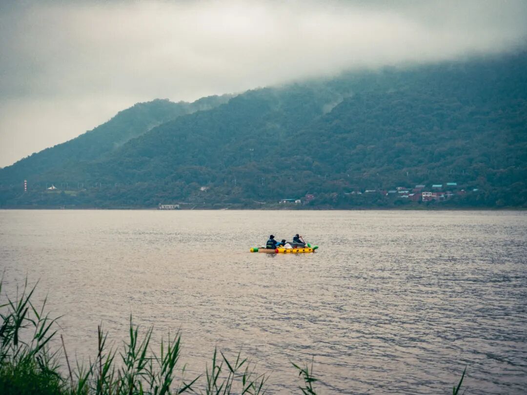 最危险的是一次夜航。他们划到了九江的鄱阳湖湖口区域。「那个季节,湖口的水比长江要少,江水会往湖口里灌,加上风大,浪也大,因为怕被吸进去。」园子园说。他们选择绕远路——往北划,躲开湖口。这个选择造成的代价,是他们不得不横穿江面,才能靠岸停船。太阳已经落山,江水在夜晚呈现出一片黑色。园子园记得,穿过江面时,他们的小船与一艘大船擦身而过,那艘大船远远看过去就是一个巨大的不断逼近的黑影,大船打着绿色的灯光提醒他们,他们则拼命划桨往前冲。