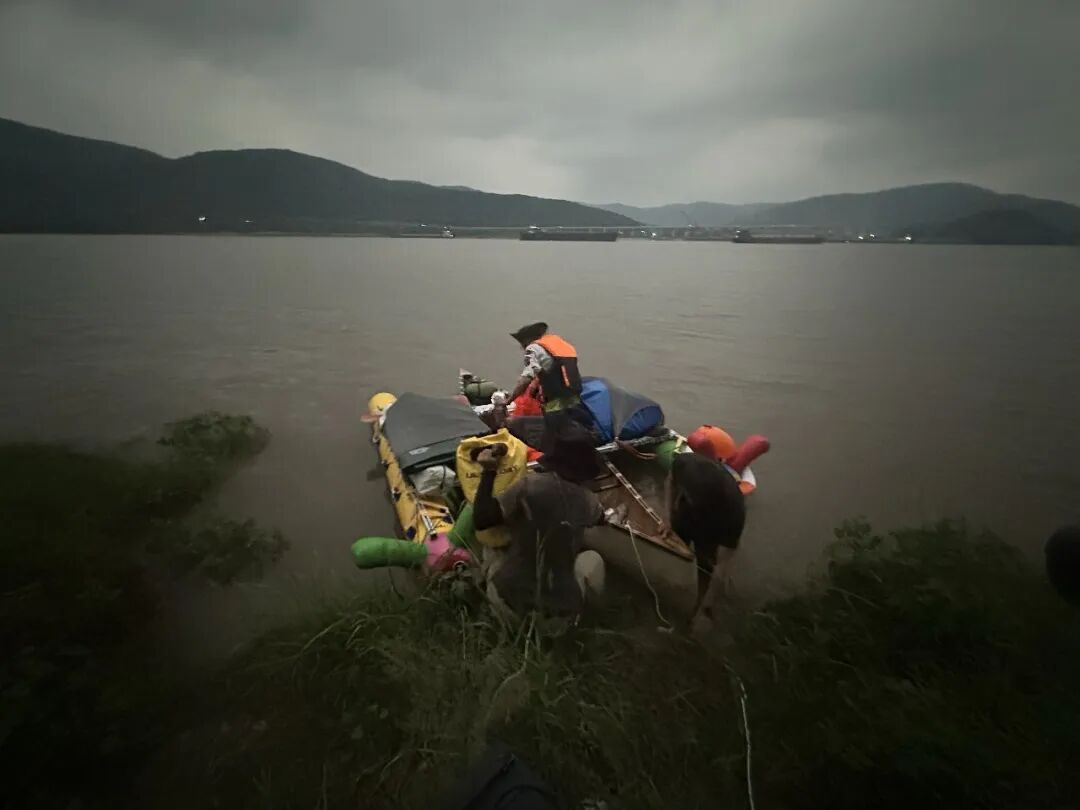「因为我们这一路之前都没有踩过点,你不知道要在哪里靠岸,也不知道靠岸的环境是个什么样的,这些都是未知数。」有的时候,为了靠岸,他们甚至要提前预留一个半小时来做准备。在阳逻时,靠岸的地方是野地,他们就拿工兵铲把植物清理掉,搭上帐篷就睡了。但这个方法后面也不能一直用,「因为有些地方会涨潮,晚上就被淹了」。