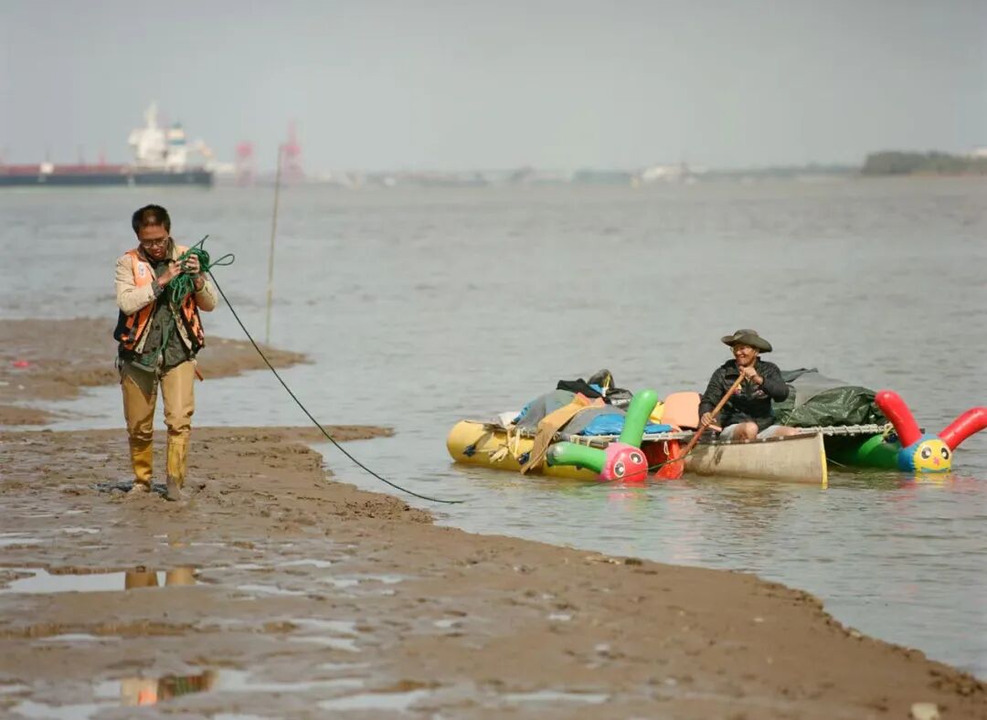 他们逐渐发现,「长江越靠近中间,水流速度越快,划起来就越省力。」有时候划着划着,他们就划到江水中间,享受一把「顺流而下」的感觉。他们当时还不太清楚,长江里也有类似陆地上的交通规则。江水从正中间一分为二,所有的船只一般靠右侧行驶——这样去上游和去下游的船只就能够错开。划到江水中间去,不仅违规,而且危险。
