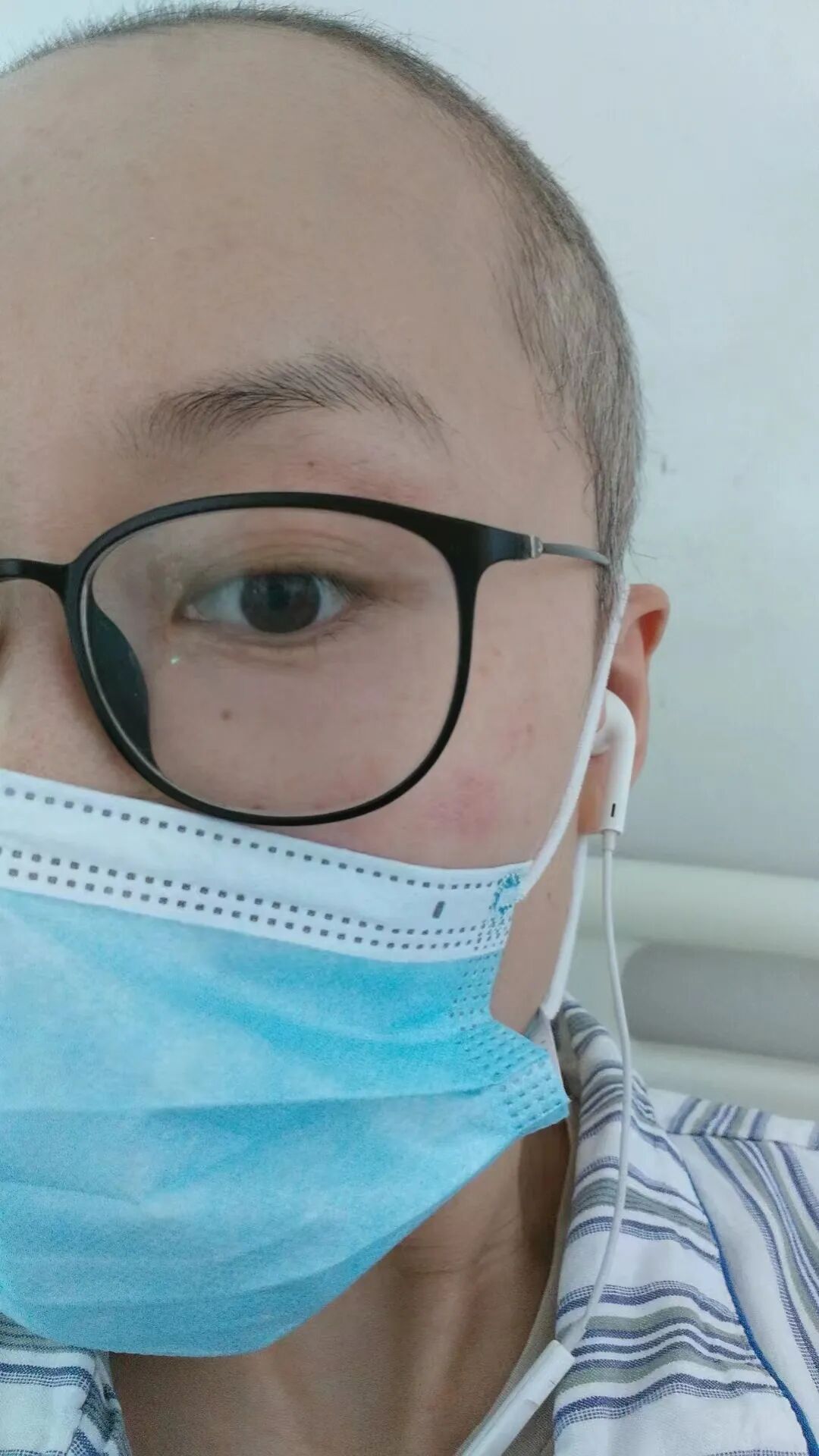 我买了两顶假发换着戴,效果挺逼真的,有一次去医院换药,被一个阿姨问,「哎,你怎么还有头发?」还有一次住院,有个视力不好的病友阿姨跟我搭话,「小姑娘,你有18岁了吗?」那时候,我头发已经掉光了,打激素之后人也胖了很多,对外貌已经不抱幻想,结果被那位阿姨真实安慰到了。