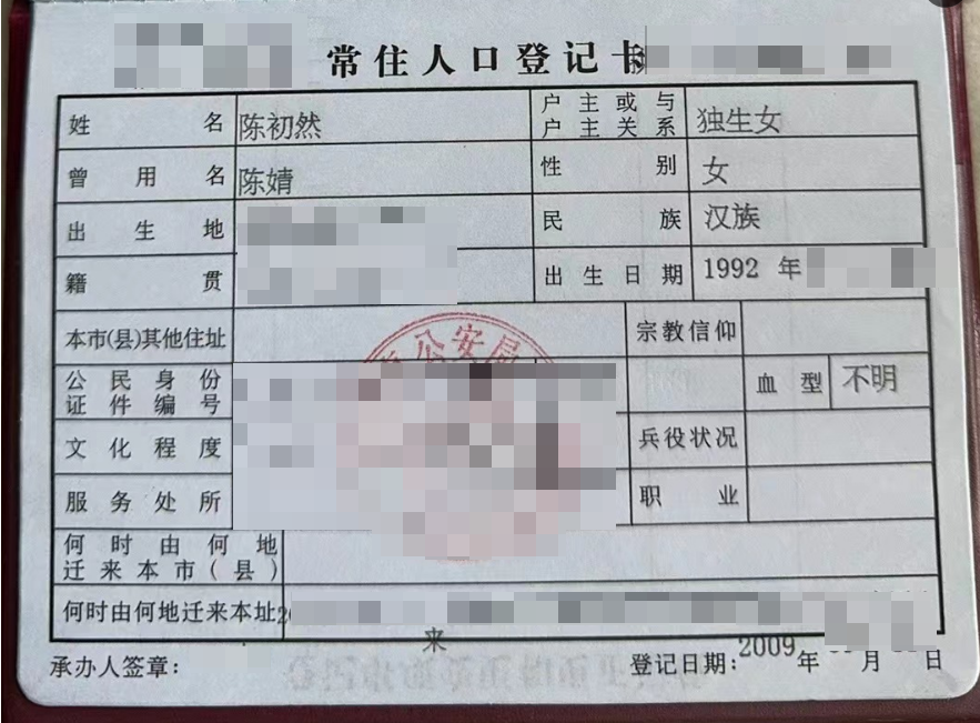 不知道在什么样的一个日子,大人们都在外屋忙着烧饭,我自己踩着凳子,把柜子里的户口本拿了出来,找到自己那页,把名字改成了妈妈的姓+小名。圆珠笔改完之后,我觉得我就完成了这件大事。然后拿给爸妈看。在做饭的他们当时是什么反应其实记不清楚了,但平时会打孩子的我妈那次没有动手,反而是我爸,从来没有打过我的爸爸,踢了我三脚。只记得我哭得很惨,但没觉得自己错。