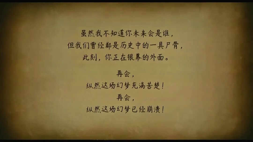 《狂野时代》的结尾,大她者将迷魂者送入虚空,伴着放映机吱吱呀呀的声响,电影以一帧字幕做了结尾,「再会,纵然这场幻梦充满苦楚!再会,纵然这场幻梦已经崩溃!」