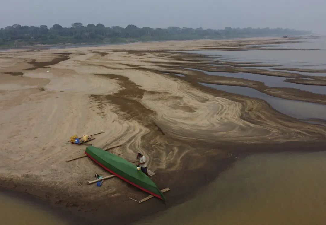 2024年9月7日,巴西亚马逊州,马代拉河干涸部分的一艘船。图源视觉中国