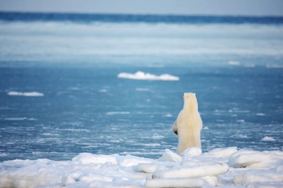 北极在2025年经历了有纪录以来最热的一年,地表气温创下125年内最高值,与此同时,海冰面积也跌至有卫星观测以来的最低水平。这样的改变是北极熊的噩梦,因为它们个头大,必须得吃高脂肪的海豹才能吃得饱,以往想要养活自己,它们只要躲在浮冰之间,趁海豹从呼吸孔冒头换气,或是在冰面上休息时,找准时机一把捕获。当气温逐渐升高,冰面越来越少,硕大的北极熊失去了藏身之处,聪明的海豹会很快识别到天敌的存在,早早逃之夭夭。抓不够海豹的北极熊只能提前上岸,可陆地上的食物又没法让它吃饱,只能一年到头饿肚子。《自然》杂志专门关注气候变化的子刊曾刊登研究预测,北极熊很可能在本世纪末面临灭绝。
