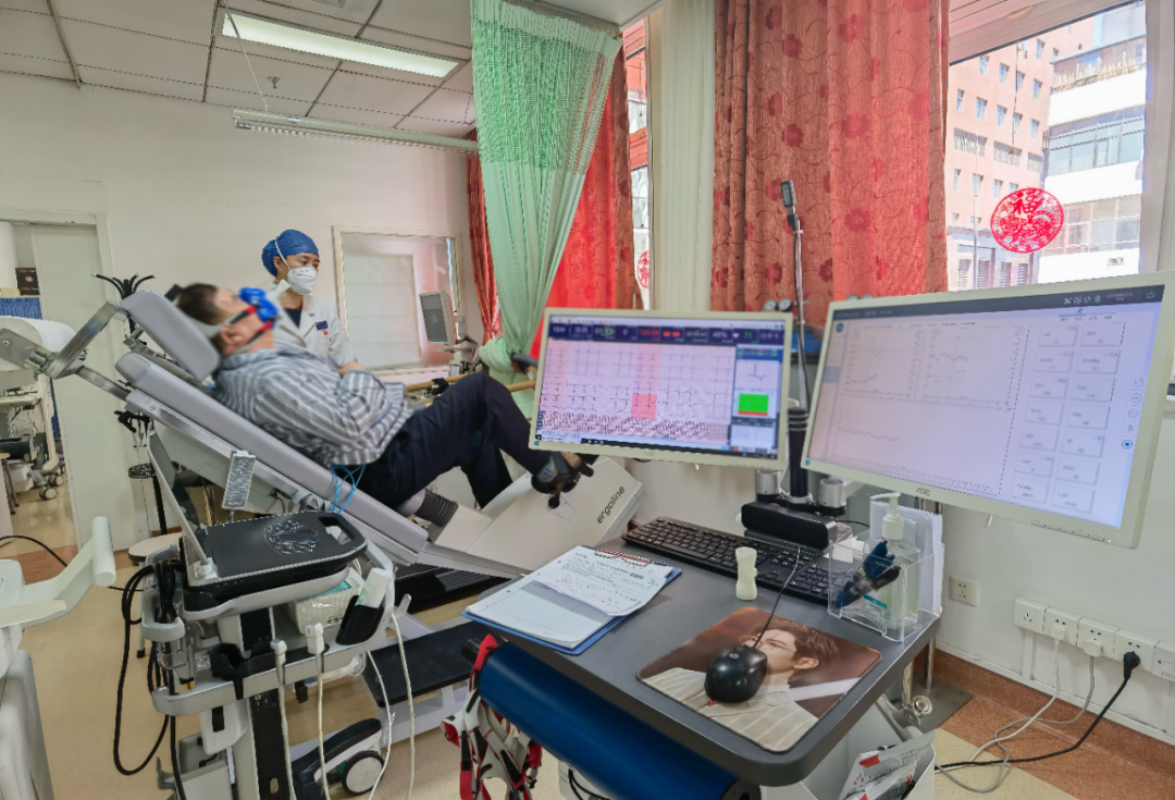 根据患者的一些风险因素情况和不适症状,我们会建议进行运动耐力测试。这项检查可以在运动状态下,持续监测一个人的摄氧量、二氧化碳排出量、心率、血压以及心电图变化,一方面判断冠心病风险和猝死风险,同时还能评估心肺耐力。