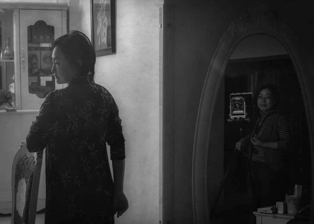 在此之前,王乃功很少收到这样的邀约。她拍摄大画幅照片多是黑白胶片,在数码摄影如此快捷方便的当下,大画幅摄影的缓慢、黑白、繁琐,都显得有些不合时宜。但她还是应邀去到了九儿家里,她想看看九儿的状态,也熟悉一下九儿的家人和拍摄环境。