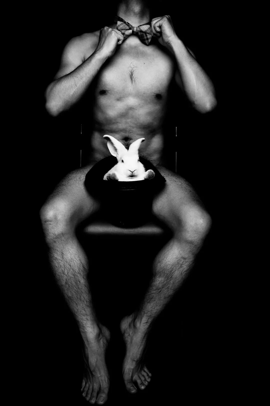 二十几岁的人,几乎都在迷茫生活的去向,都在努力找寻出口。有人抱着自己一年前「顺产12个小时又不得不转剖腹产」才艰难生下的孩子,语气沉沉地说「因为她我暂时放弃了梦想」。有人右手握着充电宝,左手握着手机,觉得生活似乎没有特别的意义,手机不充电就活不下去了。一个26岁的男孩把装着白兔的魔术帽放在双腿间,他说生活太沉闷了,想成为一个能把一切都变得有活力的魔术师——兔子是他从市场刚买来的,在李艾筱的工作室里,不停地跳来蹦去,拉屎撒尿。