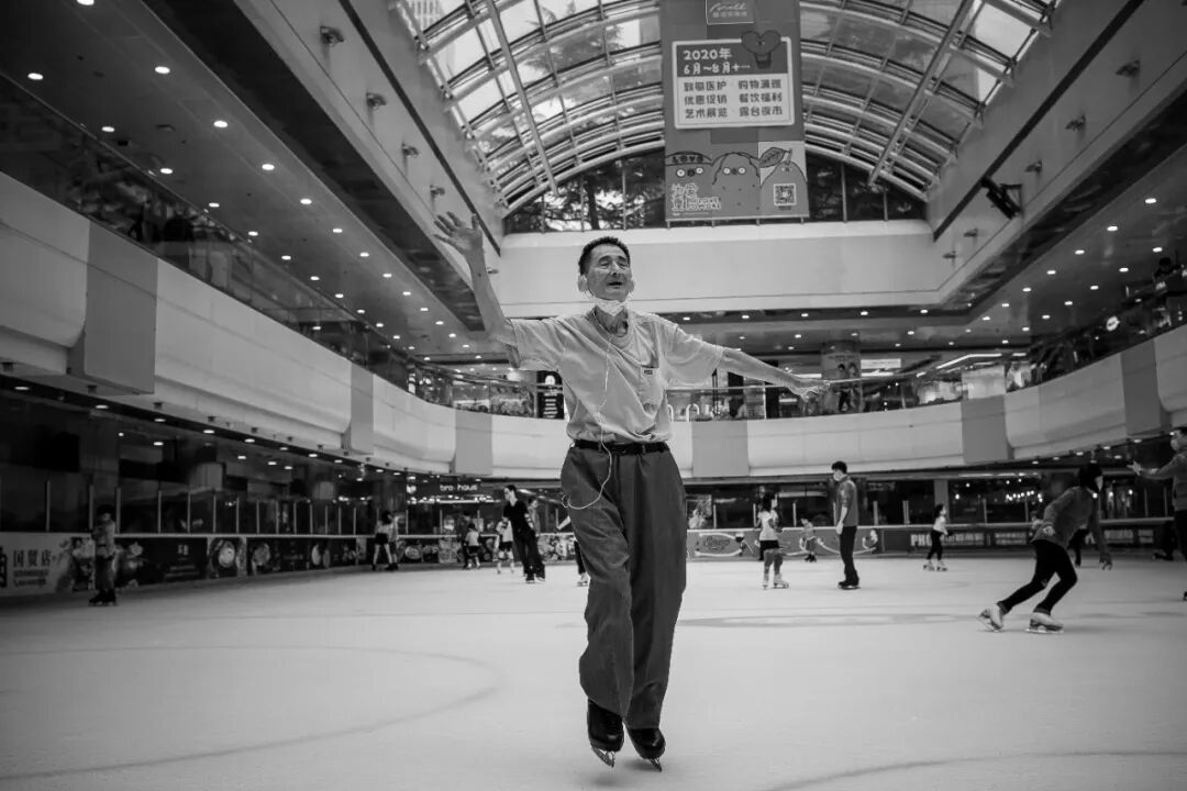 他对美有向往,第二天,直接穿了双花滑的冰刀出现在冰场。那会儿他50多岁了,不服老,心比天高,他不爱用大爷大妈们买菜的小拖车,都是左手右手各一袋10斤的大米,拎上就走。身边跟他岁数一般大的老李、老张、老孙也在滑,可当他想请教练进行更专业的训练时,却没什么人敢教——年纪大了担待不起。